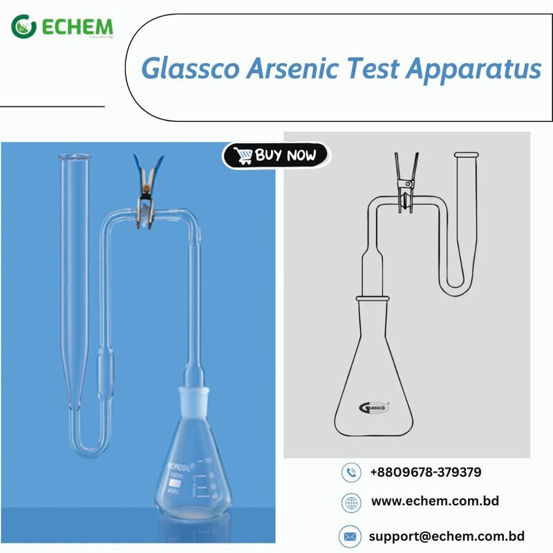 The Glassco Arsenic Test Apparatus is a specialized laboratory instrument designed for the qualitative and semi-quantitative detection of arsenic, primarily in water and pharmaceutical samples. It operates based on the Gutzeit method, a classical analytical technique that identifies arsenic through the formation of a colored stain.