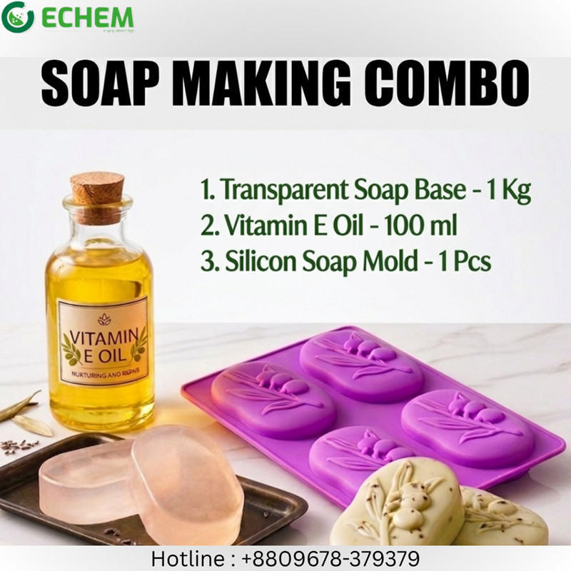 ১. ট্রান্সপারেন্ট সোপ বেস (১ কেজি): এটি উচ্চ মানের এবং স্কিন-ফ্রেন্ডলি। খুব সহজেই গলিয়ে আপনি আপনার পছন্দমতো সাবান তৈরি করতে পারবেন।